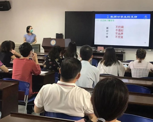 培訓(xùn)會(huì)的第一項(xiàng)內(nèi)容就是由心理老師雷靜婷帶來(lái)的《守望相助,共筑心晴天》的心理健康建設(shè)的專業(yè)培訓(xùn)課。當(dāng)陸續(xù)公布學(xué)生返校時(shí)間并對(duì)學(xué)生提出相應(yīng)要求后,中山一中西區(qū)中學(xué)心理教師借助專業(yè)監(jiān)測(cè)發(fā)現(xiàn),受疫情影響,學(xué)生返校后可能產(chǎn)生緊張、焦慮、敏感、抑郁、狂躁等心理問(wèn)題。學(xué)生心理健康教育,對(duì)危機(jī)學(xué)生實(shí)現(xiàn)早發(fā)現(xiàn)、早診斷、早干預(yù),是擺在學(xué)校和每一位教師面前的一件大事。為此每一位老師都應(yīng)該調(diào)試好自己,并掌握必要的專業(yè)知識(shí)、積極采取多種方式對(duì)學(xué)生進(jìn)行心理疏導(dǎo),引導(dǎo)學(xué)生克服心理障礙,線上教學(xué)與線下校園學(xué)習(xí)平穩(wěn)過(guò)渡,確保健康愉快成長(zhǎng)。雷老師的培訓(xùn),既有現(xiàn)象分析,更有理論支撐和具體實(shí)施措施,提出問(wèn)題同時(shí)很好地解決問(wèn)題,老師們都覺得收獲很大,紛紛拿手機(jī)拍下具體的實(shí)操步驟。