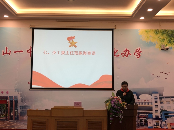 最后,學(xué)校少工委主任范振海校長(zhǎng)祝賀本次會(huì)議順利召開(kāi),他提出將進(jìn)一步加強(qiáng)少先隊(duì)組織建設(shè),少工委真正成為少年兒童的親密朋友和指導(dǎo)者,也將切實(shí)增強(qiáng)少先隊(duì)組織的先進(jìn)性和少先隊(duì)員的光榮感,也激勵(lì)少代會(huì)代表要發(fā)揮代表作用,正面影響身邊的同學(xué)。履行好各項(xiàng)職責(zé),帶領(lǐng)少先隊(duì)員從小學(xué)習(xí)做人,從小學(xué)習(xí)立志,從小學(xué)習(xí)創(chuàng)造,幫助學(xué)校的少先隊(duì)工作再有新發(fā)展,更上新臺(tái)階!