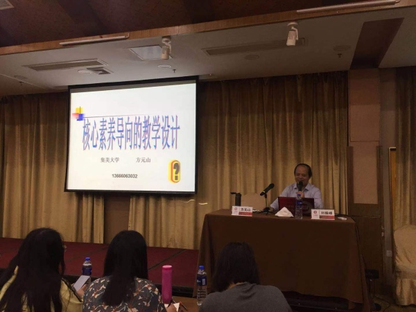 23日下午,研修班邀請(qǐng)到國(guó)家著名教育專家、福建省基礎(chǔ)教育課程改革實(shí)驗(yàn)專家、廈門集美大學(xué)教育學(xué)院教授——方元山進(jìn)行授課。方教授為學(xué)員們分享了“核心素養(yǎng)導(dǎo)向的教學(xué)設(shè)計(jì)”為主題的理論講座。本專題的主要內(nèi)容分為核心素養(yǎng)的內(nèi)涵、核心素養(yǎng)導(dǎo)向的教學(xué)理念、核心素養(yǎng)導(dǎo)向的教學(xué)設(shè)計(jì)三個(gè)部分。方教授勉勵(lì)學(xué)員們要建立核心素養(yǎng)導(dǎo)向的教學(xué)理念,他認(rèn)為所有的教育都應(yīng)該指向人,“使人視野開闊、興趣廣泛;使人產(chǎn)生對(duì)知識(shí)和真理的渴望,并且能夠形成一種嶄新的思維方法,最終成為一個(gè)文明的人,有教養(yǎng)的人,有健全人格的人”。方教授對(duì)“先學(xué)后教、以學(xué)定教、少教多學(xué)”教學(xué)設(shè)計(jì)的解讀和教學(xué)案例“孫悟空和白骨精的執(zhí)著”的展示,得到了研修班學(xué)員老師的陣陣掌聲和喝彩。