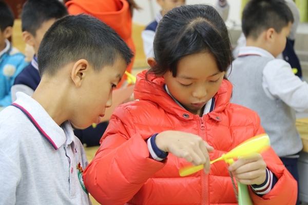12月3日、4日,學(xué)校分別舉行了一二年級(jí)橡皮筋動(dòng)力直升機(jī)年級(jí)競(jìng)賽。在競(jìng)賽活動(dòng)中,學(xué)生自主制作飛機(jī),并放飛了自己的制作成果,展示了自己的研究成果并獲得了在場(chǎng)同學(xué)的陣陣掌聲。在一二年級(jí)各班教室,小朋友們利用各種廢舊材料制作的小盆栽,創(chuàng)意的手工搭配綠色的植物,映襯著同學(xué)們花朵般的笑臉,教室里顯得更有生機(jī)。