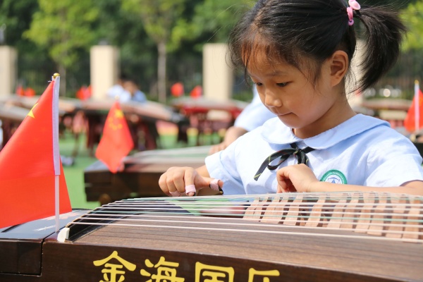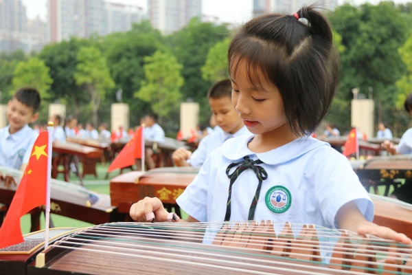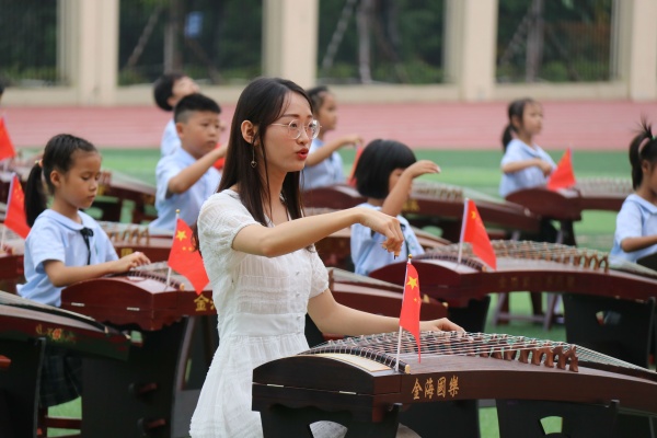 歲月不居,時(shí)節(jié)如流;箏音環(huán)繞,禮獻(xiàn)祖國(guó)。2019年適逢新中國(guó)成立70周年,秉承著“弘揚(yáng)傳統(tǒng)文化,振興民族精神”的理念,中山市西區(qū)鐵城小學(xué)學(xué)生在藝術(shù)指導(dǎo)顏萍老師的指揮下,以傳統(tǒng)樂器古箏和古典詩(shī)詞為依托,奏響了中華人民共和國(guó)成立七十周年的樂章。
