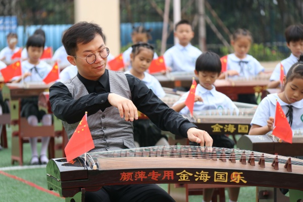據(jù)學(xué)校美育工作負(fù)責(zé)人劉敏輝副主任介紹,今天表演的孩子都是一年級(jí)小學(xué)生,他們從開學(xué)至今學(xué)習(xí)古箏剛好一個(gè)月時(shí)間。“我們?cè)谝荒昙?jí)7個(gè)班級(jí)中開展了藝術(shù)進(jìn)課堂活動(dòng),其中有三個(gè)班級(jí)是教學(xué)古箏,一個(gè)班級(jí)是教學(xué)葫蘆絲。孩子們每周參加三次訓(xùn)練,通過十余次課的學(xué)習(xí),對(duì)古箏產(chǎn)生了一定的興趣,也能在老師的指導(dǎo)下完成這次表演?!眲⒚糨x說,看到孩子們?cè)谶@么短的時(shí)間里能有如此好的表現(xiàn),覺得很欣慰?!斑@樣一場(chǎng)活動(dòng)看起來好像并不難,但其實(shí)我們音樂組團(tuán)隊(duì)在背后付出了很多的努力。不過,看到孩子們的進(jìn)步和成長(zhǎng),我覺得再多的辛苦都值得?!?/p>