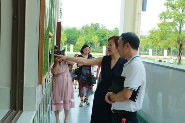 會議結束后,與會嘉賓一行近150人來到鐵城小學參觀,該校侯潔校長、張文君副校長及全體行政參與接待。當天,他們首先參觀了校園環(huán)境,在星空廊、厚德廊、鳳凰樹下的小舞臺、悅讀館等地駐足觀看。該校優(yōu)美的環(huán)境深深吸引了大家的注意力,他們紛紛駐足拍照留影。隨后,各位嘉賓還走進了該校的書法室、美術室、手工室、音樂室、舞蹈室、合唱室、管弦樂室等實地參觀,深入體驗和感受學校的辦學理念和課程特色。