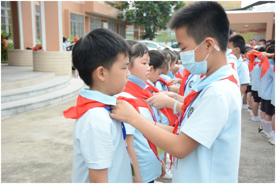 廣浩學校少工委主任黃飛躍對全體同學表達了最深切的問候與祝福,對少先隊員們能加入光榮的少先隊組織表示熱烈的祝賀。勉勵少先隊員們熱愛祖國,熱愛人們,好好學習,好好鍛煉,團結(jié)友愛,互幫互助,做好同學們的榜樣。鼓勵其余同學積極向少先隊組織靠攏,持續(xù)做好隊前教育課,爭取早日做個合格的少先隊員。
