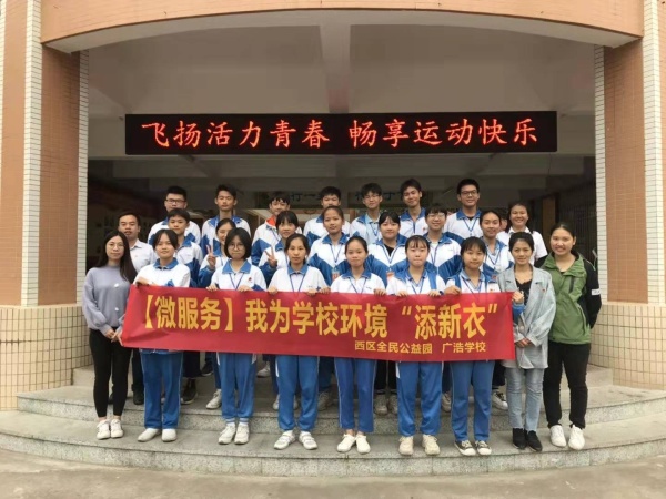 12月5日是國際志愿者日,在節(jié)日到來之際,為引導(dǎo)共青團(tuán)員與入團(tuán)積極分子認(rèn)識(shí)志愿服務(wù),弘揚(yáng)"奉獻(xiàn)、友愛、互助、進(jìn)步"的志愿者精神,踐行社會(huì)主義核心價(jià)值觀,營造校園文明新風(fēng)尚,11月26日上午,廣浩學(xué)校團(tuán)委聯(lián)合西區(qū)全民公益園舉行了維護(hù)公共空間志愿活動(dòng), 學(xué)校黨支部書記楊善德老師和少先隊(duì)大隊(duì)輔導(dǎo)員陳燕坪老師參加了此次活動(dòng)。