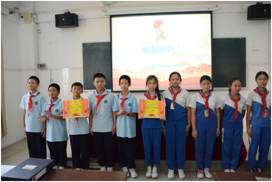 經(jīng)過一輪輪激烈的比拼環(huán)節(jié)下來,最后,冠軍隊伍從中脫穎而出,六(1)中隊和六(3)中隊以全場最高分摘得本次隊干知識技能比賽的冠軍。