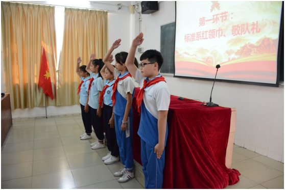 比賽中,各參賽中隊分別以標準佩戴紅領(lǐng)巾和敬隊禮、出退隊旗以及少先隊知識競答三個環(huán)節(jié)進行激烈角逐。各參賽隊員們嚴格按照比賽標準的要求展示自己的佩戴紅領(lǐng)巾、敬標準隊禮以及出退隊旗的實力。少先隊知識競答環(huán)節(jié),臺上參賽隊員們的精彩競答,更是贏得臺下的陣陣掌聲。