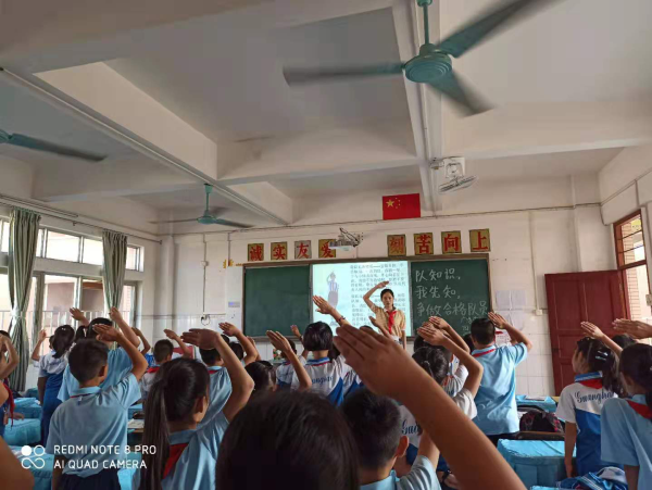 少先隊(duì)員們仔細(xì)聆聽輔導(dǎo)員們的教導(dǎo),糾正自身還不規(guī)范的小細(xì)節(jié),紛紛跟著輔導(dǎo)員系上最規(guī)范的紅領(lǐng)巾,敬最標(biāo)準(zhǔn)的隊(duì)禮,嚴(yán)格按照要求舉起右拳于耳側(cè)用最洪亮的聲音學(xué)著宣誓、呼號(hào)等。未入隊(duì)的小同學(xué)們帶著滿滿的好奇跟著老師認(rèn)真學(xué)著少先隊(duì)基本知識(shí),爭(zhēng)取早日戴上鮮艷的紅領(lǐng)巾入隊(duì),成為一名真正的少先隊(duì)員。