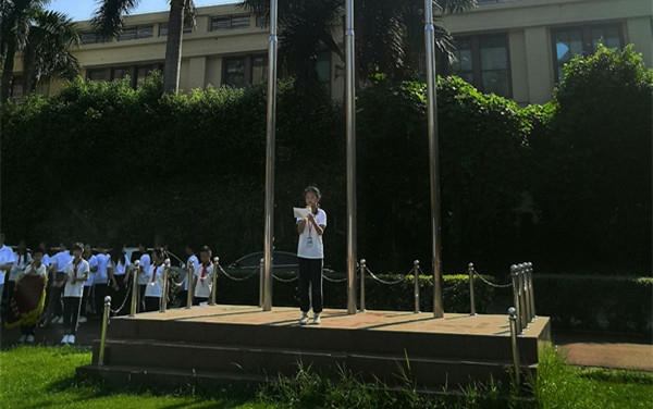 2019年9月23日上午,中山市新長江學校舉行“迎國慶、 升國旗 、唱國歌”的升旗儀式和“彩旗飄揚迎國慶”為主題的國旗下講話。同學們用鏗鏘雄健的步伐、昂揚向上的精神面貌、氣勢恢宏的合唱國歌為祖國母親成立70周年獻禮。