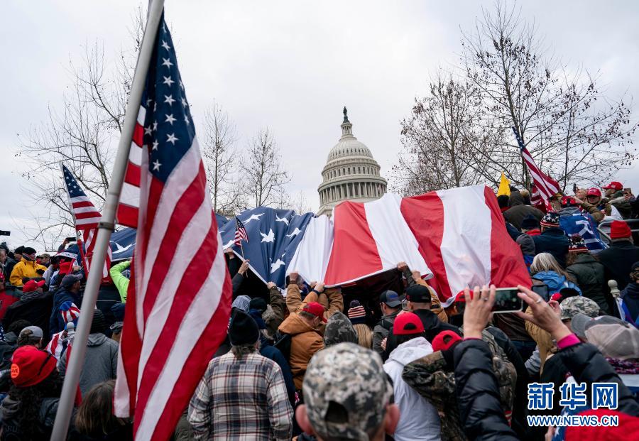 這是1月6日在美國華盛頓拍攝的美國總統(tǒng)特朗普的支持者在國會大廈前舉行示威游行的資料照片。新華社記者 劉杰 攝