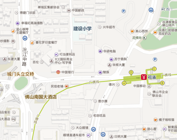 | 交通線(xiàn)路 | 路線(xiàn)一:乘搭地鐵廣佛線(xiàn)祖廟站(D出口),沿建新路走進(jìn)入城門(mén)頭路,沿城門(mén)頭路走140米,右轉(zhuǎn)進(jìn)入建設(shè)一街,沿建設(shè)一街走160米,到達(dá)佛山市建設(shè)小學(xué)。 路線(xiàn)二:乘搭公交車(chē)103、109、110、111、113、125、127、130、138、152、160、176、259、G14,科學(xué)館站下車(chē)?yán)^續(xù)向前,沿汾江中路輔路走60米,左轉(zhuǎn)進(jìn)入建設(shè)街,走130米,左轉(zhuǎn)進(jìn)入建設(shè)一街,沿建設(shè)一街走30米,到達(dá)佛山市建設(shè)小學(xué)。 路線(xiàn)三:乘搭公交車(chē)103、106、111、116、118、122、123、125、126、128、130、137、159、164b、166、G12,祖廟路(百花廣場(chǎng))站下車(chē),沿祖廟路走240米,左轉(zhuǎn)進(jìn)入城門(mén)頭路,沿城門(mén)頭路走140米,右轉(zhuǎn)進(jìn)入建設(shè)一街,沿建設(shè)一街走160米,到達(dá)佛山市建設(shè)小學(xué)。 停車(chē):駕車(chē)由城門(mén)頭路進(jìn)入建設(shè)一街后直行20米,右轉(zhuǎn)進(jìn)入興華商場(chǎng)停車(chē)場(chǎng)。 | ||||||||