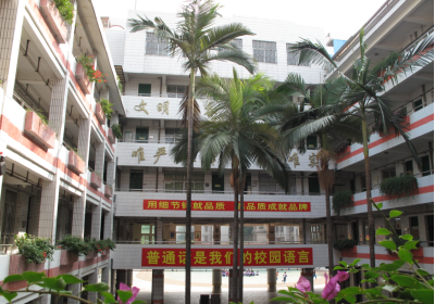 | 環(huán)境設(shè)施 | 校本部校園建設(shè)符合國家要求,學(xué)校占地面積6172平方米,校舍建筑面積8147平方米,其中教學(xué)輔助用室4635平方米,占總建筑面積57%,生活用房549平方米,占總建筑面積7%,校園綠化面積達(dá)1468平方米,占總建筑面積18%。近年來,政府不斷加大學(xué)校投入,學(xué)校環(huán)境和教學(xué)設(shè)施得到明顯改善。校園環(huán)境優(yōu)雅設(shè)計規(guī)劃、布局合理,教學(xué)區(qū)、生活區(qū)、運動區(qū)分開:教學(xué)區(qū)有一般教室27個,所有課室均安裝風(fēng)扇、空調(diào)。另外設(shè)有電腦室、科學(xué)實驗室、書法室、美術(shù)室、圖書室、少先隊大隊部、心理輔導(dǎo)室、衛(wèi)生室、音樂室、舞蹈室、體育館等專用室和校園網(wǎng)、紅領(lǐng)巾廣播網(wǎng)、校園多媒體教學(xué)平臺、校園安防網(wǎng)、閉路電視等教育平臺。圖書館藏書量為31887冊,人均26.3本。 校本部運動區(qū)場地約4100平方米,其中體育運動場面3100平方米,讀書廊250平方米、小花園502平方米、小禮堂250平方米;生活區(qū)設(shè)有衛(wèi)生間,冷、熱水供應(yīng)。校門周邊整潔,校舍建筑質(zhì)量經(jīng)建設(shè)部門檢測符合國家建設(shè)標(biāo)準(zhǔn)。 | ||