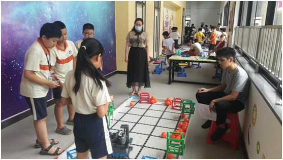 比賽開始信號發(fā)出,同學們按抽簽次序依次上場,使出渾身解數(shù)操控機器人完成各項任務(wù)。經(jīng)過2個多小時的激烈比拼,來自佛山市同濟小學、佛山市第九小學、佛山市禪城區(qū)東鄱小學、佛山市鐵軍小學、佛山市禪城區(qū)玫瑰小學5所學校的6支隊伍順利晉級。