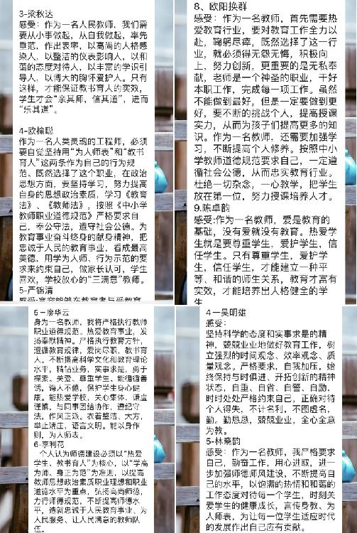 在本次的線上集體學(xué)習(xí)中,通過對8起典型問題的了解和反思,龍江城小全體教師深刻認(rèn)識到師德“紅線”不可逾越。在嚴(yán)守“紅線”的同時,要謹(jǐn)記自己肩負(fù)的職責(zé)和使命,不斷錘煉教育報國之志,時刻堅(jiān)守為黨育人、為國育才初心,自覺堅(jiān)守精神家園、堅(jiān)守人格底線,率先垂范、以身作則,培養(yǎng)擔(dān)當(dāng)民族復(fù)興大任的社會主義建設(shè)者和接班人。
