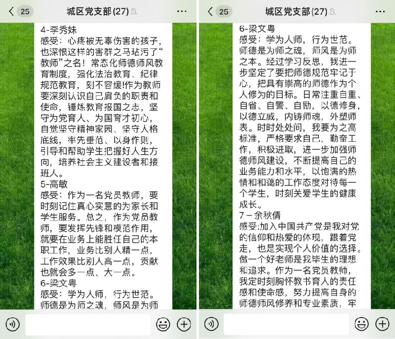 “師者,以德為先”。高尚的師德師風(fēng)是教師從事教育工作的靈魂。為了進(jìn)一步加強(qiáng)教師隊(duì)伍建設(shè),不斷提高教師職業(yè)道德素質(zhì)和師德修養(yǎng),保障全體教師在良好師德師風(fēng)塑造和學(xué)習(xí)中的不松懈和持續(xù)性,7月27日-30日,在暑假期間,龍江城區(qū)中心小學(xué)組織全體教師在線上重點(diǎn)學(xué)習(xí)了“教育部公開曝光8起違反教師職業(yè)行為十項(xiàng)準(zhǔn)則典型問題”一文,并進(jìn)行了自我反思和學(xué)習(xí)心得的分享交流。