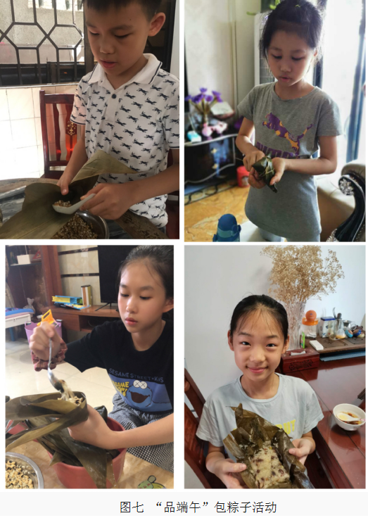 利用節(jié)假日,孩子們在家長的幫助下進(jìn)行包粽子活動,別看他們個個年紀(jì)小,包起粽子來卻是有模有樣。除此之外,孩子們還參與了掛艾草、觀看賽龍舟、灑雄黃酒、畫額、炒午時鹽等具有閩南泉州端午節(jié)日習(xí)俗的活動。親子合力包粽子活動既鍛煉了孩子們的動手能力,又讓他們感受到了端午節(jié)獨有的傳統(tǒng)習(xí)俗,也增進(jìn)了親子關(guān)系,通過實際操作、親身體驗,不僅感受到了傳統(tǒng)節(jié)日的特色魅力,更把節(jié)日的氣氛推向了高潮。