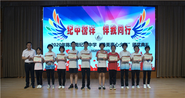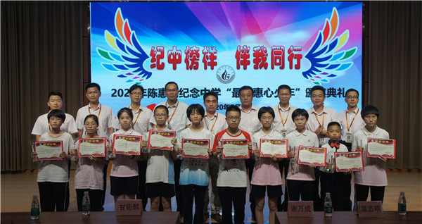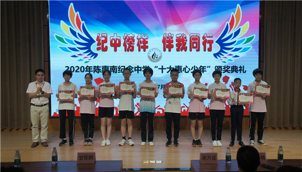 7月8日下午,2020年陳惠南紀(jì)念中學(xué) “惠心少年”頒獎(jiǎng)典禮在學(xué)術(shù)報(bào)告廳舉行。學(xué)校校長甘鉅麟、學(xué)校家委會(huì)會(huì)長朱先生、學(xué)校黨總支部副書記謝萬成以及學(xué)校部分行政出席活動(dòng)。初一初二級(jí)各班通過網(wǎng)絡(luò)直播收看了典禮。