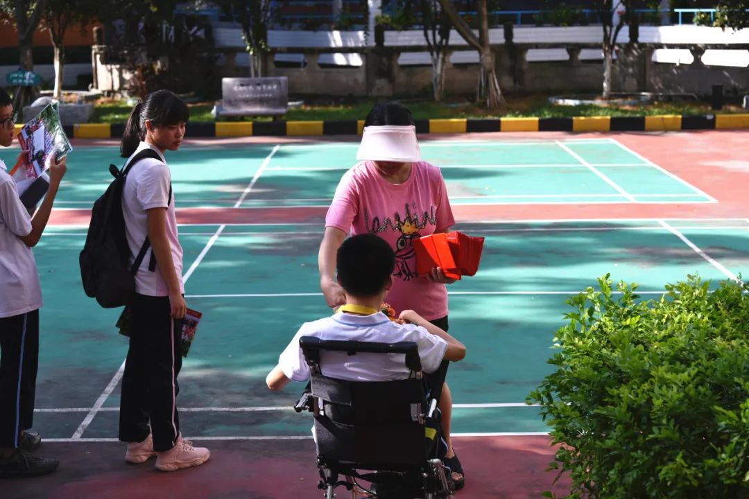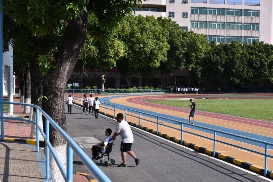 小陳家庭條件很不錯,當(dāng)初在選擇初中學(xué)校時,家人有更多不同的選擇,但小陳的爺爺是一中校友,出于對母校的信賴,堅(jiān)持選擇了順德一中外國語學(xué)校,為孫子三年初中生涯奠定基礎(chǔ)。而學(xué)校也不負(fù)重托,為了更好地照顧陳同學(xué),在選定課室時,安排了最接近衛(wèi)生間的課室并改造出一個無障礙衛(wèi)生間,同時在課室旁邊的小樓梯修建起了無障礙通道和扶手。學(xué)校的傳統(tǒng)是每一學(xué)年換一次課室,但為了方便小陳,這一屆學(xué)生,三年都在同一個課室上課。而在剛過去的中考里,學(xué)校還特意調(diào)整考場位置,以便小陳可以在一樓的考室進(jìn)行中考。