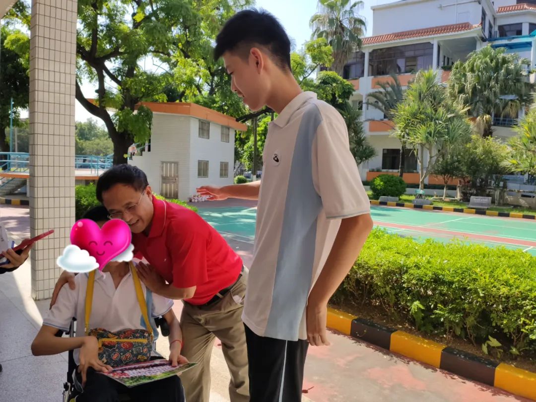 “小陳是一位家教不錯,視界寬闊的學(xué)生。雖身體不便,但自強(qiáng)不息。而植先,更是我們學(xué)校的美德少年,師長眼中的“天使”。我為有這樣兩位學(xué)生而自豪!”對兩位同學(xué),梁日繼老師更是贊美有加。