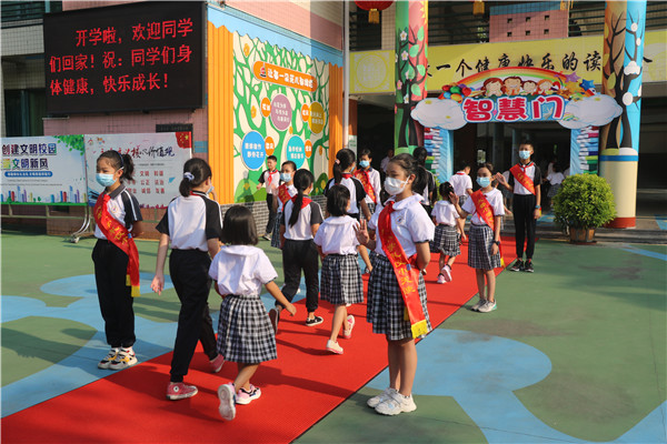 “我是一名小學(xué)生了!”是多么的自豪,全體新生宣讀成長宣言。梁校長也為一年級送上祝福,希望孩子們從小養(yǎng)成良好的生活、學(xué)習(xí)習(xí)慣。