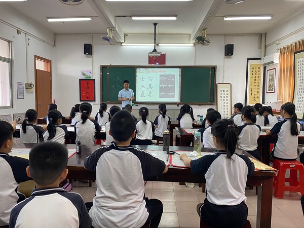 為弘揚中華優(yōu)秀傳統(tǒng)文化,提升學生漢字規(guī)范書寫水平,推動學校書法特色活動的發(fā)展,區(qū)教育局、區(qū)語委委托順德區(qū)書法家協(xié)會開展書法進校園活動,送課到學校,打造語言文字示范校、特色校。