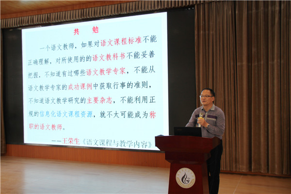 之后,周華章老師開(kāi)展了《文本解讀策略例談》的講座,借助《水滸傳》的片段、《節(jié)婦吟》、《黃鶴樓》、《孔乙己》等不同文體的文章,解析文本解讀的八大策略,周老師提醒各位老師:文本細(xì)讀一直在路上,值得我們花一輩子的時(shí)間去發(fā)現(xiàn)、去思考。只有教師自己“想清楚,說(shuō)明白,做到位”了,才能自然而然地指導(dǎo)學(xué)生接近、到達(dá)甚至超過(guò)自己,實(shí)現(xiàn)閱讀教學(xué)的高效。周老師還強(qiáng)調(diào),文本解讀不是單純地教一兩篇文章,而是要讓學(xué)生從“學(xué)一例”拓展到“知一類(lèi)”,要注重學(xué)習(xí)活動(dòng)最后的小結(jié)與反思,力求從感性到理性。
