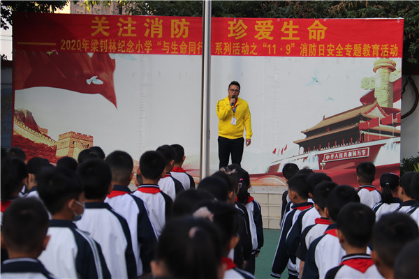 2020年11月9日,初冬的暖陽灑遍校園,在全國第二十八屆消防日這個特殊的日子里,為切實加強學校安全工作,提高廣大師生安全防范意識、安全疏散與自救能力,保障師生生命安全,打造平安校園,梁釗林紀念小學開展“關(guān)注消防 生命至上”專項教育活動。此項活動分為早上國旗下講話、睡室安全疏散演練、主題班會課、課室逃生疏散演練。