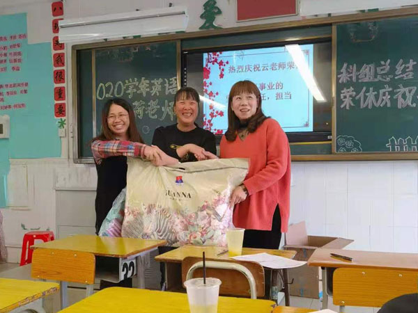榮退儀式上,謝文忠校長代表學校為云處荷老師頒發(fā)了紀念品。英語科組教師也為云處荷老師舉辦了慶祝榮退活動并贈送了禮物。