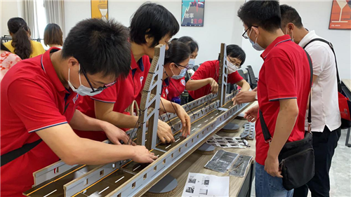在導(dǎo)游的帶領(lǐng)下,黨員教師們首先實(shí)地參觀了建造基地。隨后在會(huì)議室,聆聽(tīng)《港珠澳大橋與灣區(qū)橋梁亮點(diǎn)》講座,了解大橋建設(shè)工作和運(yùn)營(yíng)情況,學(xué)習(xí)建設(shè)者不怕困難、自主創(chuàng)新的精神。最后分組搭建港珠澳大橋模型,在模型的搭建過(guò)程中更充分地感受這項(xiàng)世界級(jí)的超級(jí)工程的偉大,充分感受中國(guó)建造的力量之雄偉。