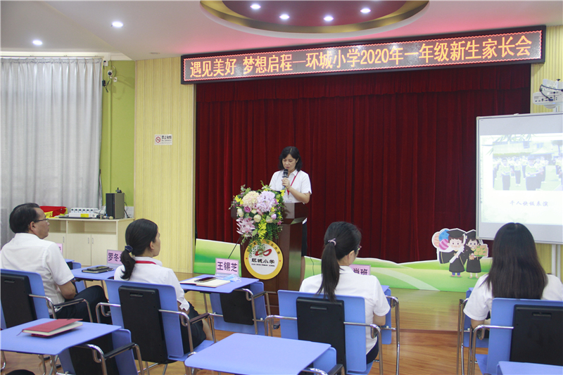 與此同時,家長們陸續(xù)進入五樓多功能室,參加一年級新生家長會。會議上,麥雪珊副校長代表學校致歡迎詞,滿懷深情地為家長們作美麗校園簡介和“家校合作共贏”專題講話,提出希望新生家長們能在以后的合作中,做到互相信任、互相尊重、互相理解、互相包容、換位思考。