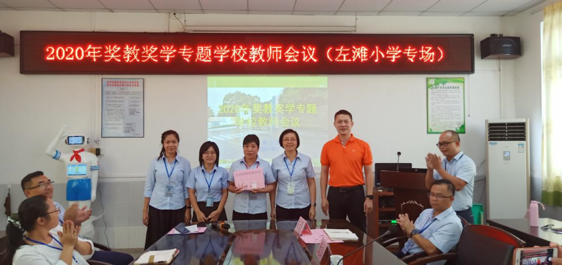 為學(xué)習(xí)貫徹龍江鎮(zhèn)2020年度獎(jiǎng)教獎(jiǎng)學(xué)大會(huì)精神,乘著尊師重教的和風(fēng),9月8日下午,龍江左灘小學(xué)召開2020年獎(jiǎng)教獎(jiǎng)學(xué)專題學(xué)校教師會(huì)議,龍江鎮(zhèn)委傅敬海委員、鎮(zhèn)教育局代表以及左灘小學(xué)全體教師出席本次會(huì)議。
