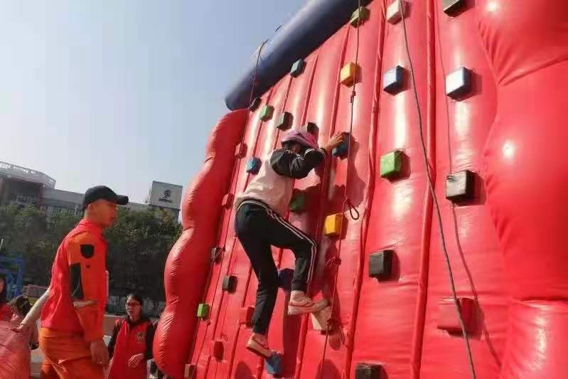 高空逃生技巧是一項(xiàng)非常重要的技巧。同學(xué)們?cè)诮叹毜闹v解下,紛紛進(jìn)行高空逃生,同學(xué)們勇敢地爬到了最高點(diǎn)再下來(lái)。