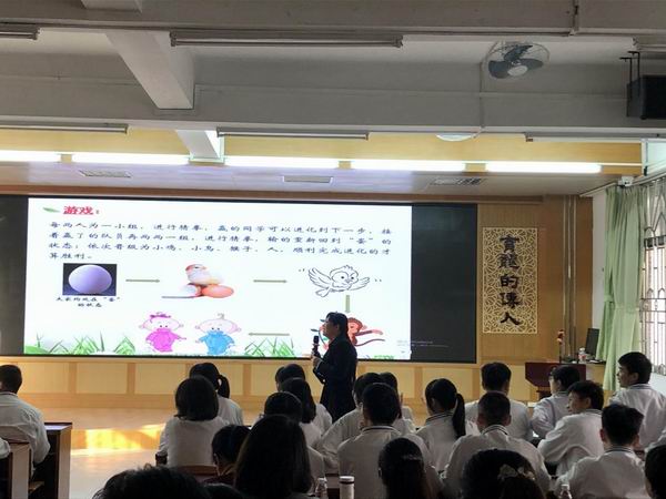 首先,由順德區(qū)第一中學(xué)陳敬霞老師進行《向陽而生方能行遠》班會課展示。陳老師緊緊扣住高三學(xué)習情況以及高三學(xué)生的特點,以生物學(xué)科知識滲入班會課中,將教書育人有機結(jié)合的主線,從趣味游戲?qū)耄谟螒蛑屑ぐl(fā)學(xué)生的活動興趣,并且營造輕松愉快的學(xué)習氛圍,接著順勢引出高三學(xué)習的壓力,貼近學(xué)生的學(xué)習現(xiàn)狀,讓學(xué)生都有感而發(fā),并且充分利用合作形式,讓學(xué)生在交流溝通中思考解決辦法,結(jié)合生物知識引導(dǎo)學(xué)生樹立“向陽而生方能行遠”的精神與意志,傳播正能量。陳老師的班會課形式多樣,以學(xué)生為主體,將思想升華,讓聽眾們獲益良多。