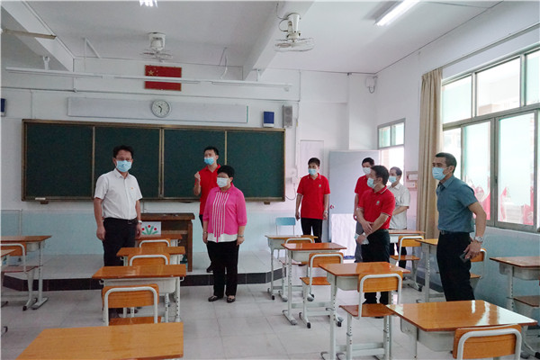 7月2日上午,順德區(qū)區(qū)委副書記、區(qū)政法委書記王勇、區(qū)教育局局長閔樂萍一行到容山中學(xué)開展高考防疫專項(xiàng)督查工作。容山中學(xué)校長、考點(diǎn)主考區(qū)淑玲及相關(guān)行政陪同領(lǐng)導(dǎo)到校園相關(guān)高考功能場室進(jìn)行巡視。
