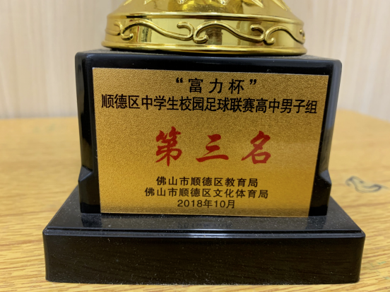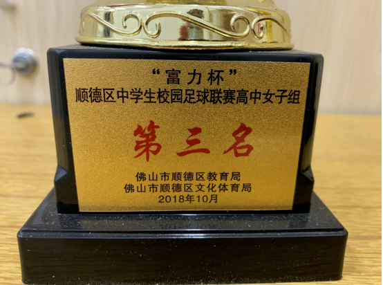 2018年順德區(qū)中學(xué)生“富力杯”校園足球聯(lián)賽高中男子組、女子組都榮獲第三名;