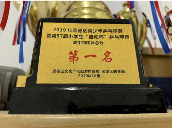 2018年度、2019年度順德區(qū)青少年乒乓球比賽暨56屆小學(xué)生“流動杯”乒乓球比賽高中組團體總分第一名;