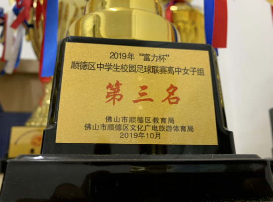 2019年順德區(qū)中學(xué)生“富力杯”校園足球聯(lián)賽高中女子組都榮獲第三名,男子組榮獲第七名;