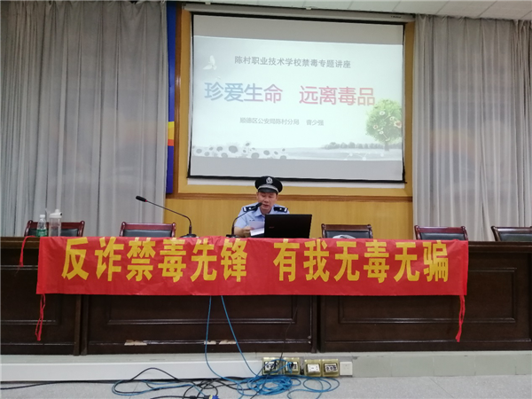 為深入開展禁毒宣傳教育工作,堅(jiān)決筑牢禁毒防線,全力打造無毒校園,2020年7月6日上午,陳村職校邀請(qǐng)了順德區(qū)公安局陳村分局曹少?gòu)?qiáng)警官到學(xué)校開展了以“加強(qiáng)禁毒教育,構(gòu)建無毒社會(huì)”為主題的禁毒知識(shí)講座。全體教師參加了本次活動(dòng)。