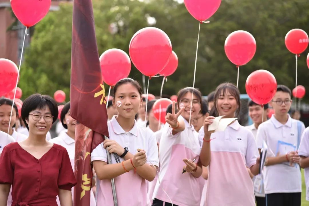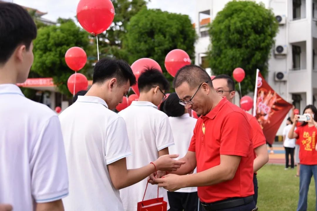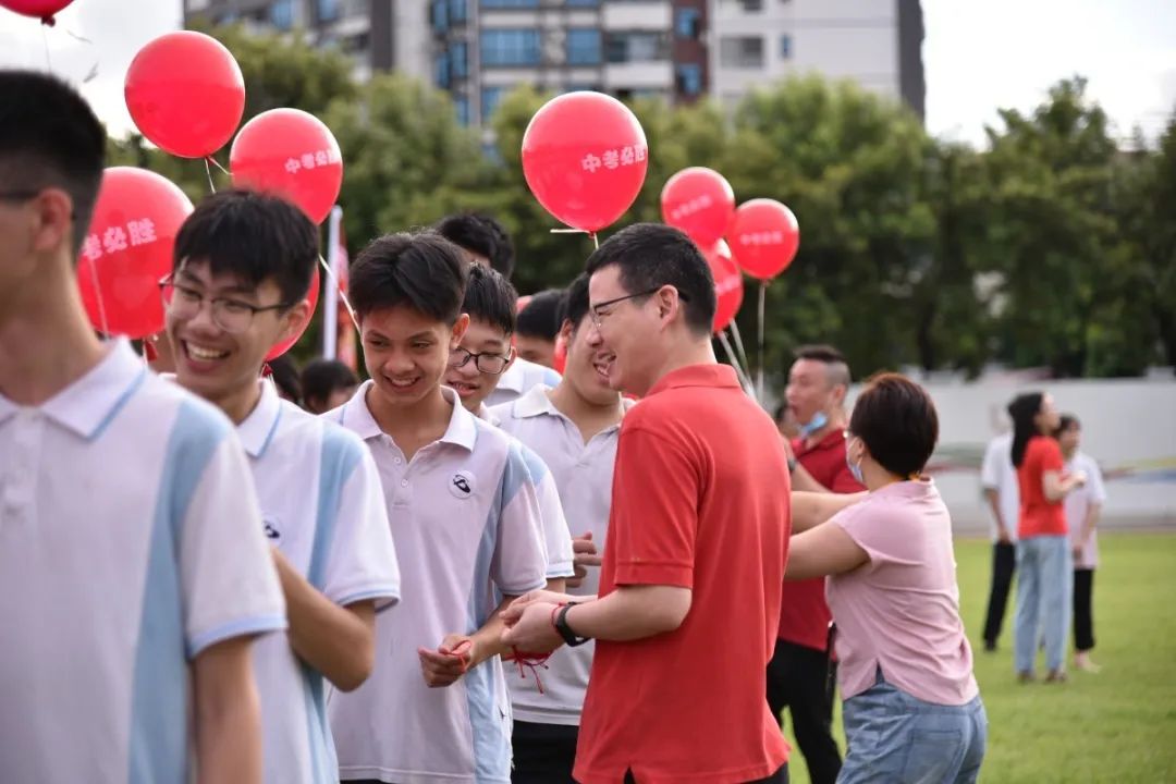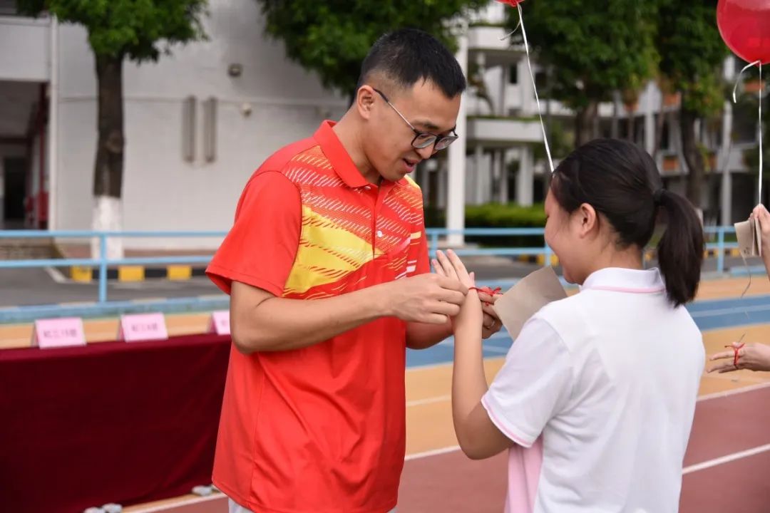 三年來,正因為有各位家長的支持與配合,家校形成合力,同學(xué)們才能健康快樂成長。各班家長代表手持“金榜題名”氣球進(jìn)場,為每位同學(xué)送上最美好的祝福,各任課老師為同學(xué)們戴上勝利紅繩,一起放飛夢想!