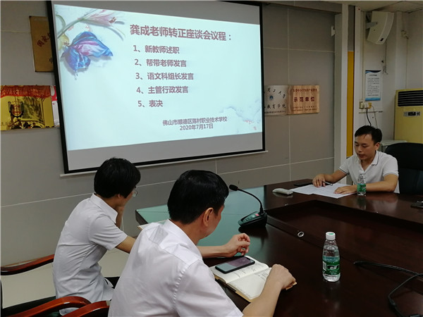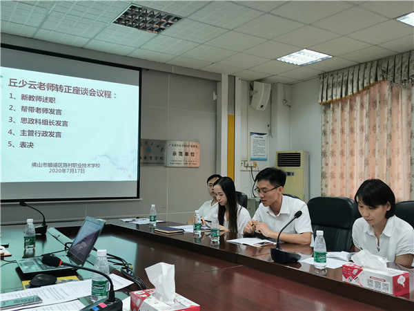 一年前,陳村職校匯聚了一群懷揣教育夢想的新青年教師,為促進新教師互相學習,互為鏡鑒,2020年7月17日,陳村職業(yè)技術(shù)學校召開2019年新教師轉(zhuǎn)正座談會,學校專職副書記黃麗賢、教務(wù)處主任周忠紅、德育處主任鐘全榮、部長科組長、幫帶教師及龔成、林曉玲、楊慧、丘少云、袁泳峰五位新教師出席本次座談會。