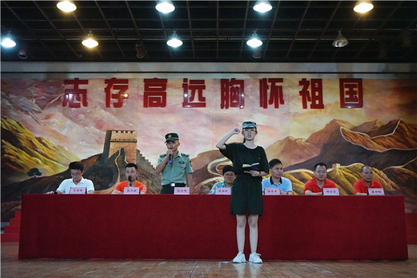 學生代表高一(1)班余瑤帶領全體學生進行軍訓宣誓,鏗鏘的誓言展現(xiàn)了容山學子戰(zhàn)勝困難、圓滿完成軍訓任務的決心。