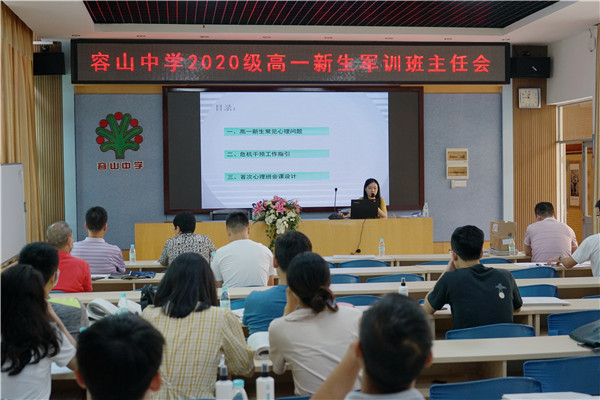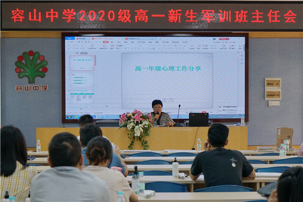 主管德育的高一落級(jí)行政肖楚熊副主任為班主任們一一解讀了軍訓(xùn)各項(xiàng)文件,尤其是2020級(jí)高一軍訓(xùn)具體工作指引,安排了軍訓(xùn)前、軍訓(xùn)入營(yíng)當(dāng)天、軍訓(xùn)期間的各項(xiàng)工作任務(wù),期望能給高一新生一個(gè)完美的軍訓(xùn)體驗(yàn)!心理教師周昀則從專業(yè)視角出發(fā)為班主任呈現(xiàn)了一場(chǎng)精彩的分享。容山中學(xué)歷來(lái)重視心理工作,重視學(xué)生的心理健康教育,教師們?cè)趯I(yè)心理教師的指引下會(huì)更好地完成學(xué)生的心理建設(shè)。心理科組還為學(xué)生準(zhǔn)備了第一次班會(huì)課和班主任的祝福語(yǔ)卡片,期待一進(jìn)門學(xué)生就能感受到容山中學(xué)對(duì)他們的愛和期許,更加努力,不負(fù)韶華!