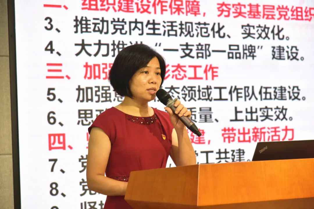 隨后,順德一中外國語學校黨總支專職副書記劉婷解讀本學期黨建工作計劃。劉副書記表示,在一中黨委領導下,我校黨總支要加強學習,以黨建工作引領品牌學校創(chuàng)建工作,以態(tài)度引領、方向引領和行動引領,來加強組織建設和意識形態(tài)工作,黨建帶群建,帶出新活力,夯實基層黨組織根基,促進學校各項工作高位發(fā)展,與學生一起成長。