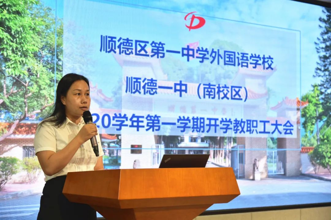 教師團隊是學校發(fā)展的核心競爭力。李淑敏主任首先向全體教職工介紹本學期加入順德一中外國語學校和順德一中(南校區(qū))大家庭的新教師,新學期,迎來新氣象,新教師,造就新希望!