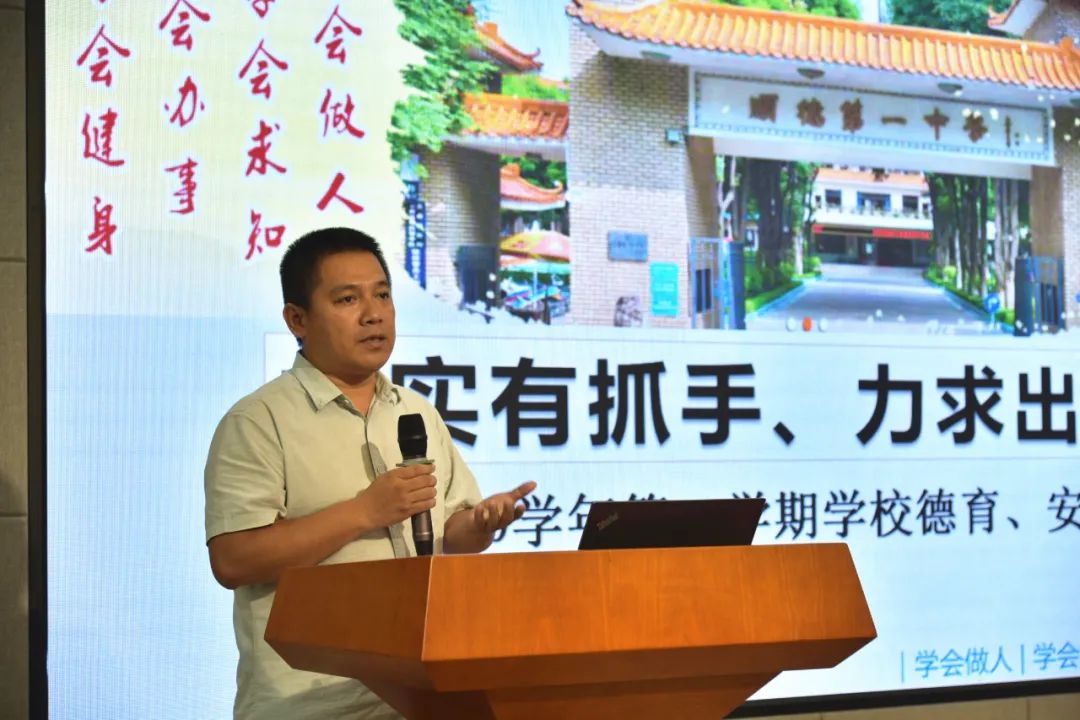 隨后,陳水繹副校長解讀本學期德育工作計劃。陳副校長在點評上學年德育工作后,提出本學期的工作目標和計劃。他表示,疫情防控態(tài)勢下,學校將繼續(xù)全方位強化常態(tài)化階段的疫情防控。