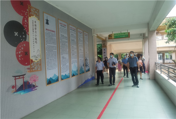 鄧銳昌副局長一行首先走訪了龍江中學(xué)校園,重點參觀了龍江中學(xué)小語種特色文化長廊,詳細(xì)詢問了學(xué)校的開學(xué)防疫準(zhǔn)備和師生返校健康情況。在之后座談會上,龍江鎮(zhèn)教育局黃順?gòu)筛本珠L向調(diào)研組匯報了龍江鎮(zhèn)教育的整體情況。黃順?gòu)筛本珠L表示,在新形勢下將繼續(xù)堅持課堂改革,提升龍江鎮(zhèn)教師發(fā)展專業(yè)水平,將龍江鎮(zhèn)各類學(xué)校發(fā)展推向更高層次。接著,我校張朝煌校長在文化發(fā)展,質(zhì)量發(fā)展和特色發(fā)展三個方面對我校特色辦學(xué)做了匯報工作,希望在龍中人的努力下,我校能向社會呈現(xiàn)出質(zhì)量更優(yōu)、特色更強、生源更好、口碑更佳的發(fā)展勢頭。鄧銳昌聽取黃順?gòu)筛本珠L和張朝煌校長的匯報后,充分肯定了龍江鎮(zhèn)和龍江中學(xué)近年來在教育發(fā)展中取得突出成績,并提出了在之后的工作中在堅持提高硬件設(shè)施的基礎(chǔ)上,著力提高隊伍建設(shè),進一步推動龍江鎮(zhèn)義務(wù)教育階段與龍江中學(xué)的集團化辦學(xué)成果,打造龍江鎮(zhèn)基礎(chǔ)教育品牌,實現(xiàn)優(yōu)質(zhì)均衡的教育發(fā)展模式。
