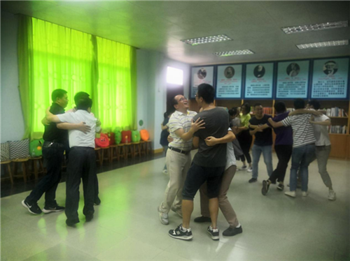 接著進(jìn)行的是“覺察自我”的小游戲,兩組老師通過內(nèi)外圈的方式進(jìn)行兩兩配對,共同完成本輪游戲。樂老師希望大家在互相分享的過程中,班主任老師們學(xué)會(huì)尋找內(nèi)在力量來應(yīng)對壓力,與壓力共舞。老師們各自配對后,分別向?qū)Ψ椒窒怼爱?dāng)班主任最成功的一件事”和“做班主任壓力最大的一件事”,其中高三18班班主任魯志明向大家分享了她覺得自己在班主任生涯中最成功的一件事情是在幾年前把一位差點(diǎn)走入歧途的男同學(xué)拉回正道,讓他沒有走入歧途,最后順利考上大學(xué)。那一刻,魯老師說她真的為自己是一名班主任而感到自豪。這一個(gè)小故事的分享讓大家都深有體會(huì),并與之產(chǎn)生共情。高三4班班主任莫枝棋老師談到自己二十多年班主任生涯中讓自己頗感壓力的是孩子們現(xiàn)在的心理狀態(tài)受信息化影響變得越來越不穩(wěn)定,學(xué)生心理問題也越來越多,但自己會(huì)堅(jiān)持做好家校的聯(lián)動(dòng),關(guān)愛學(xué)生,尤其是心理特殊學(xué)生,一定會(huì)努力陪伴他們順利走完高中生涯。