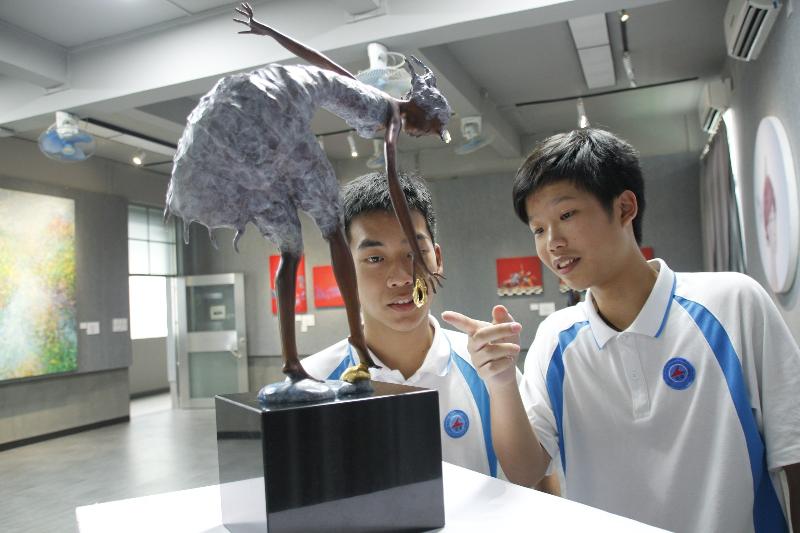 高一20班學(xué)生巫海洋看完展覽后表示,他對其中《后現(xiàn)代生活-維米爾與愛馬仕》這幅作品最欣賞,因為該幅畫作色彩鮮艷,畫中畫的創(chuàng)意十分新穎,讓人心情瞬間變得愉悅。 順德區(qū)羅定邦中學(xué)設(shè)辦展覽為在校青少年增加便利的藝術(shù)生活,在緊張的文化學(xué)習氛圍下找尋突破,通過展覽對藝術(shù)院校的了解,給與學(xué)生更多升學(xué)的選擇。