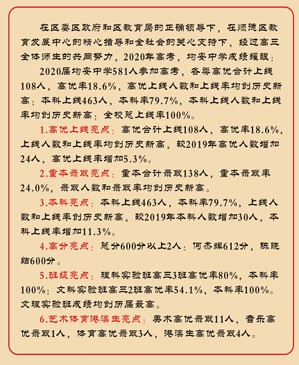 2021屆高三年級(jí)學(xué)子們將不辱使命,明年的六月你們定會(huì)在高考中旗開(kāi)得勝,金榜題名,創(chuàng)造均安中學(xué)的新輝煌!