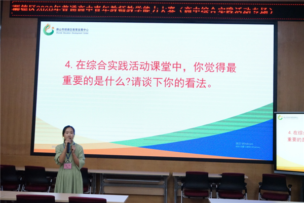 “即興演講”環(huán)節(jié),順德區(qū)給各位選手4分鐘的抽簽準(zhǔn)備, 5分鐘即興演講要求參賽選手現(xiàn)場抽取題目,隨后答辯2-3分鐘。我校胡華杰老師抽到“在綜合實(shí)踐活動(dòng)課堂中,你覺得最要的是什么,請談?wù)勀愕目捶ā钡念}目, 根據(jù)題目,她覺得綜合實(shí)踐活動(dòng)課程的實(shí)施,離不開學(xué)生主動(dòng)用心的實(shí)踐和各種實(shí)際操作活動(dòng),突出學(xué)生主體,意味著把學(xué)生作為課程的主體,一切從學(xué)生的實(shí)際出發(fā),激情演講獲得了評委的一致好評。